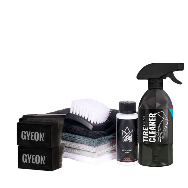 King Carthur x Gyeon Dækforseglingspakke indeholder alt du behøver for at rengøre og beskytte dine dæk! I den komplette pakke indgår dækrens, dækforsegling og alt tilbehør som behøves til rengøring og forsegling. Denne pakke er fremstillet til alle, uanset om du er nybegynder eller en mere erfaren bilplejer, da produkterne er effektive og enkle at anvende! King Carthur dækforseglingspakke er et must for dig, som vil have et flot helhedsindtryk af bilen. Dine dæk fortjener en konge behandling! ANBEFALES AF OS!