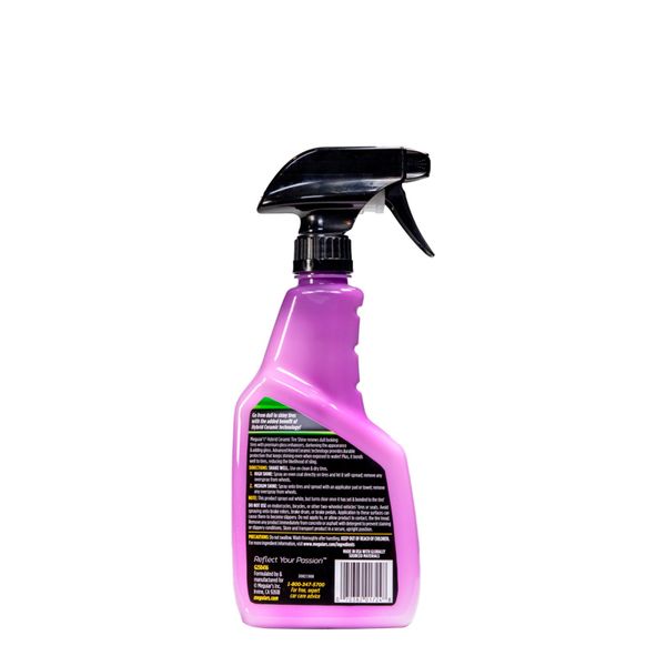 Hybrid Ceramic Tire Shine er Meguairs nyeste tilføjelse til Hybrid-familien. Hybrid Ceramic Tire Shine er en dækglans, der genopliver dækkene og samtidig beskytter dem. Med fremragende hydrofobicitet og imponerende snavsafvisende egenskaber giver Ceramic Tire Shine et overlegen beskyttelsesniveau. Den avancerede formel er designet til hurtigt at binde sig til dækoverfladen, hvilket minimerer risikoen for uønskede sprøjt på bilens lak. Desuden kan du tilpasse glansen efter dine egne præferencer, fra en sofistikeret mellemglans til en spejlblank højglans. Takket være SiO2-teknologien får du ikke kun en fremragende glans, men også en utrolig holdbar og langvarig effekt. Giv dine dæk den ultimative behandling med denne højtydende dækglans med høj ydeevne.