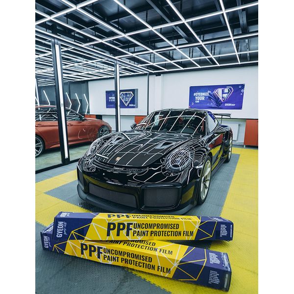 PPF er praktisk talt en gennemsigtig "tape", dvs. den ændrer ikke bilens udseende eller farve, men beskytter overfladen mod stenslag, ridser, slitage m.m. - faktorer, som voks eller fugemasse ikke kan beskytte mod. PPF er velegnet til alle typer køretøjer og har en meget stærk beskyttelse mod gulfarvning og UV-stråling. PPF er også tykkere end konventionel film og beskytter overfladen bedre. Den forbedrede hydrofobicitet i PPF Protect+ forhindrer snavs i at sætte sig fast og gør det muligt for vand at perle elegant på overfladen. Takket være dens fremragende selvreparerende egenskaber kan de små mekaniske skader, der uundgåeligt opstår på filmens overflade, når bilen er i brug, nemt fjernes, hvorefter overfladen bliver som ny igen. PPF Protect+ er designet specielt til køretøjer i daglig brug og kræver ikke så meget vedligeholdelse som sin forgænger, selv om overfladen bør rengøres regelmæssigt. Fra en installatørs synspunkt er den nye PPF Protect+ tykkere end de andre PPF'er i samme kollektion, så på trods af at den er let at flytte, kræver arbejdet med den flere færdigheder end andre Gyeon PPF'er. Fem års garanti mod fabrikationsfejl.