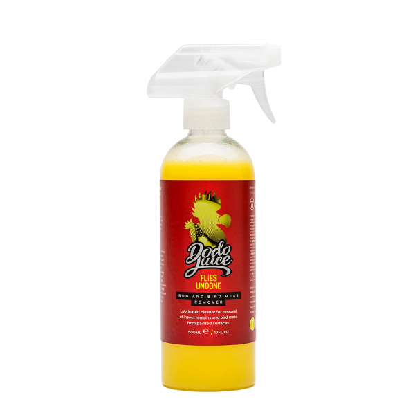 Dodo Juice Flies Undone er et effektivt rengøringsmiddel til fjernelse af insekter og fugleklatter. Kemikalierne i produktet trænger ind i det organiske snavs og blødgør og løfter det fra overfladen, hvilket gør det meget let at fjerne ved at skylle eller tørre let af med en mikrofiberklud. Især fugleklatter kan forårsage uønskede skader på bilens lak, så de bør fjernes så hurtigt som muligt. Dodo Juice Flies Undone har en behagelig frisk duft af citron.
