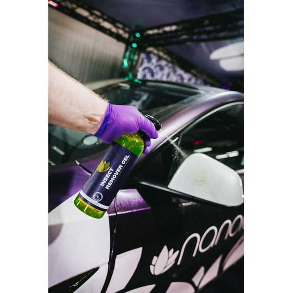 Nanolex Insect Remover GEL er en effektiv løsning til at fjerne klæbrige insekter og andet organisk snavs fra køretøjer. Den er klar til brug og har en let geléagtig konsistens, som maksimerer virketiden på overfladen: Insect Remover GEL løber ikke ned eller tørrer ikke så hurtigt som fuldt flydende rengøringsmidler. Takket være den innovative formulering opløser den selv de mest stædige insektpletter uden at beskadige lakoverfladen eller det beskyttende produkt. Det samme produkt virker ikke kun på lak, men også på plast- og glasoverflader, hvilket betyder, at det med sikkerhed kan bruges på alle de områder, der har tendens til at blive ramt af insektsværme. Den perfekte hjælper til sommerens vask!