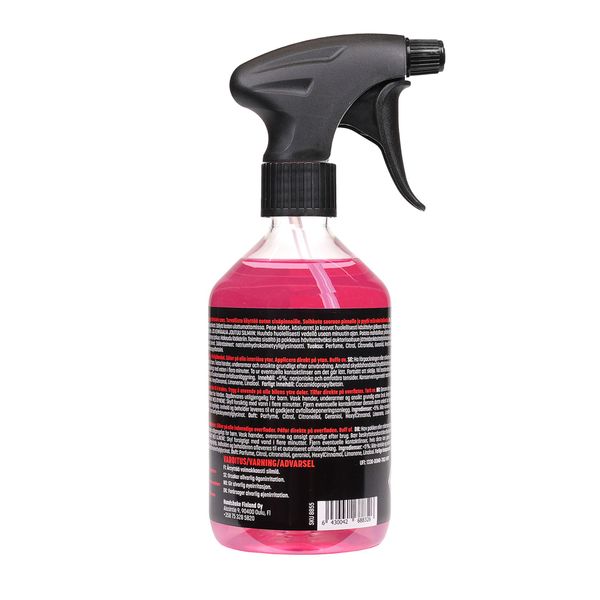 BEMÆRK! Brug ikke i direkte sollys eller på varme overflader. Lad ikke produktet tørre på overfladen, der behandles, og opbevar flasken frostfri.