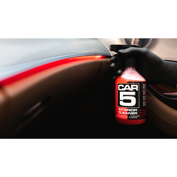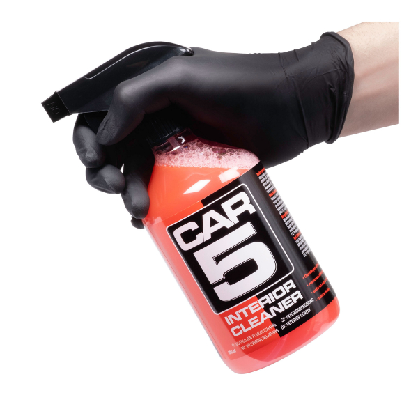 CAR5 Interior Cleaner er f.eks. Velegnet til rengøring af hårde overflader af plast, gummi og vinyl og er meget nem at bruge. Produktet er færdigblandet og leveres i en plastflaske med en sprøjtedyse. Sprøjtedysen af høj kvalitet gør det let at påføre midlet gennem en ensartet tåge, der forhindrer, at stoffet overdoseres eller ender på uønskede overflader såsom tekstil. CAR5 Interior Cleaner er et budgetvenligt valg, da en lille mængde middel er tilstrækkelig til at rengøre et større område.