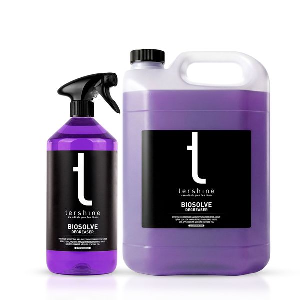 tershine Biosolve Degreaser er en mærkningsfri og biologisk nedbrydelig koldaffedtning, som effektivt opløser asfalt, tjære, olie og andet petroleumsbaseret snavs. Produktet er udviklet for at imødekomme høje miljøkrav uden at gå på kompromis med rengøringseffekten, hvilket gør det til et fremragende valg for miljøbevidste bilplejeentusiaster. Biosolve fungerer på både våde og tørre overflader!