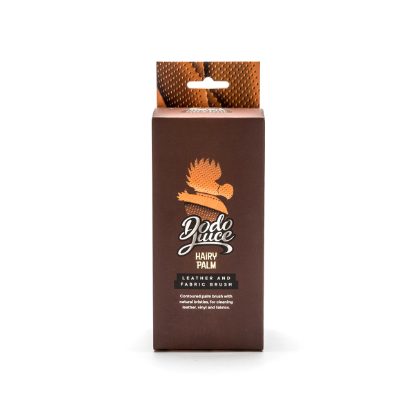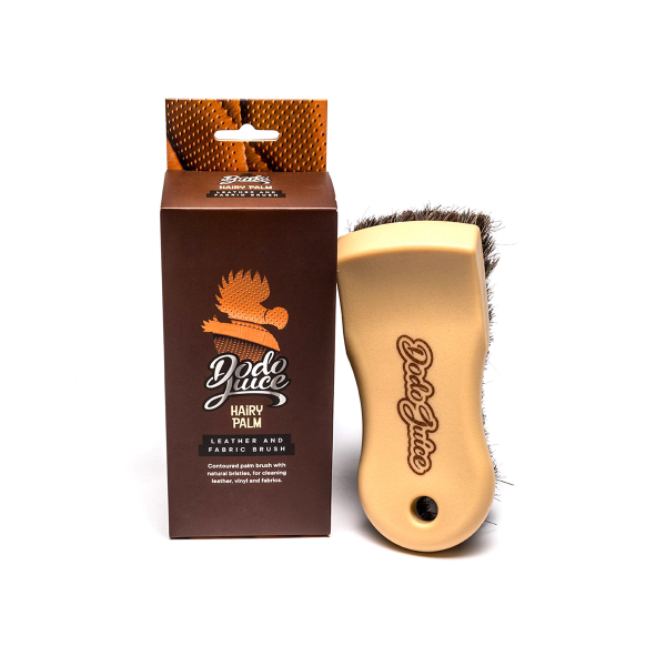 Dodo Juice Hairy Palm er en rengøringsbørste af høj kvalitet, der kan bruges på både læder- og stofoverflader. Det gør rengøringen lettere og forbedrer effekten af rengøringsmidler betydeligt, idet det fjerner selv det mest stædige snavs fra den overflade, der skal rengøres, som f.eks. læderporer og sømme. Desuden rengør dens naturlige børstehår meget mere skånsomt end konventionelle nylonbørster. Det ergonomiske design, der er let at holde, gør det behageligt at bruge, og designet gør det lettere at håndtere f.eks. hjørner og bøjninger på sæder.