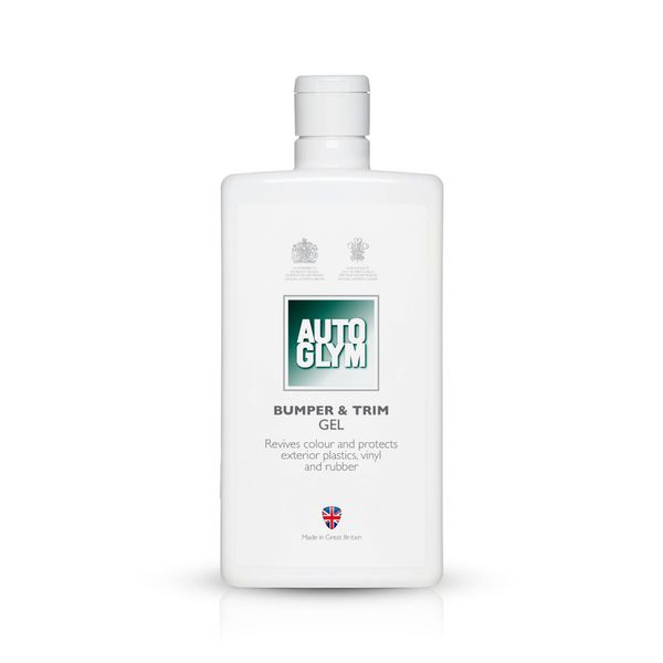 Autoglym Bumper & Trim Gel er en plastbehandling i geléform til plast-, gummi- og vinyloverflader. Bumper & Trim Gel giver holdbar beskyttelse mod solens UV-stråler, som med tiden får plast- og gummidele til at falme. Den indeholder ingen farve- eller blegemidler og giver umalede plastoverflader deres oprindelige farve og udseende tilbage. Velegnet til udvendige plast-, vinyl- og gummidele, f.eks. støbte plastkofangere, gitre, spejlholdere, lister, hjulkassedetaljer, dørhåndtag, vinyltage, gummidæmpere og skærme. Det kan også bruges på dørlister af gummi om vinteren for at forhindre dem i at fryse i koldt vejr.