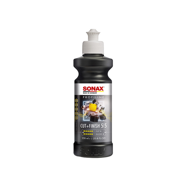 Sonax Profiline Cut & Finish er et effektivt slibende polermiddel, som i et trin fjerner ridser og andre lakdefekter, samt giver overfladen en høj glans. Midlet giver hurtigt et resultat på defekte lakke med svære ridser, oxidation og andre ujævnheder, uden besvær med støv. Du opnår altså både slibeeffekten fra et kraftfuldt slibende middel og glansgraden fra et fint polermiddel på en gang.