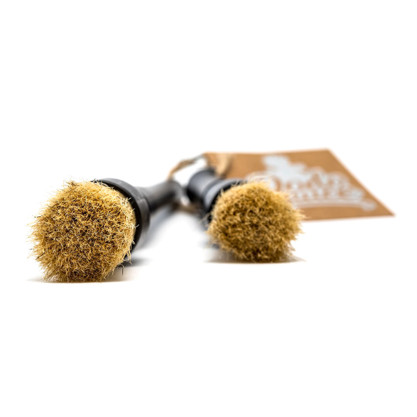 To rengøringsbørster med svinehår, som kan bruges til både let børstning og påføring af rengøringsmiddel på bilens indvendige og udvendige overflader.