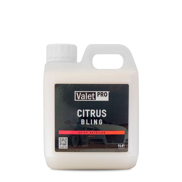 ValetPRO Citrus Bling er en multifunktionel Quick Detailer med fem forskellige funktioner i én flaske. Ud over at genopfriske vokslaget kan den rense glasoverflader og give et godt glid til rengøring af ler. Citrus bling efterlader ingen grå striber og pletter. Når det fortyndes med vand, har dette produkt 5 forskellige anvendelsesmuligheder: